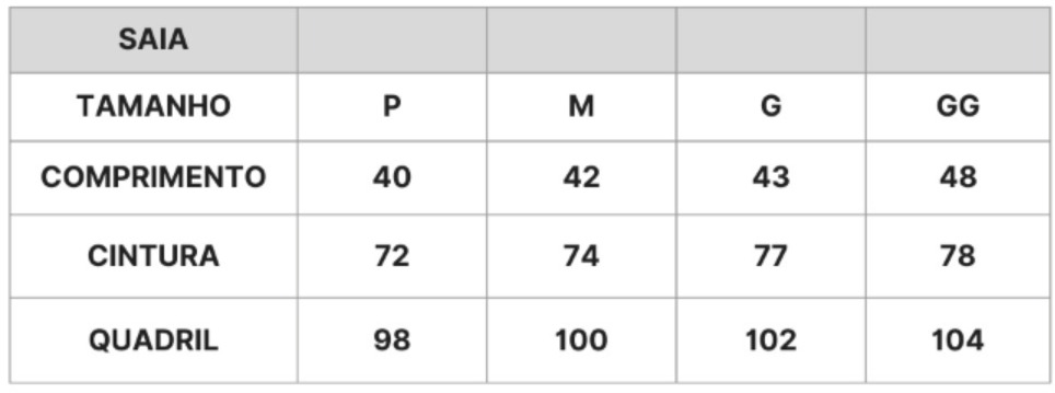 - Vestindo: 36/38 (P) | 40 (M) | 42 (G) | 44 (GG)